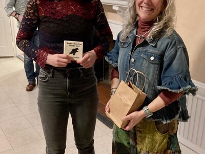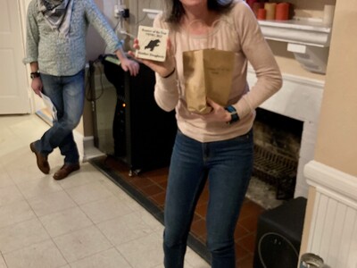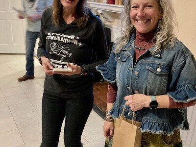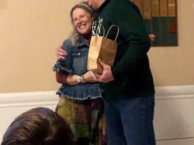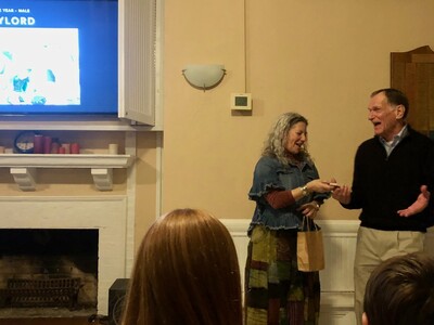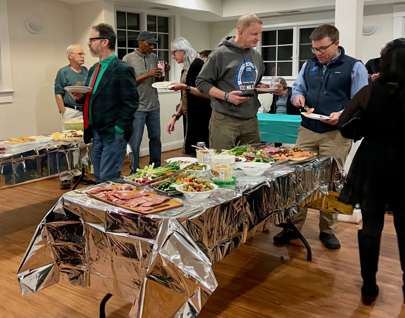 About 70 members of the Virginia Happy Trails Running Club gathered on Saturday evening, February 4, 2023 for one of the social highlights of the year — the VHTRC’s annual Awards Party. This was our first time gathering in two years and it was wonderful to be together again! Thanks to Tom McNulty for coordinating the delicious hors d’oeuvres, Rob Colenso for entertaining everyone as master of ceremonies, Helen MacDermott for compiling a member accomplishments slideshow, and Jaret Seiberg for securing the host site (the now traditional venue at the Bannockburn Community Club in the Cabin John area of Maryland). It was a fabulous evening with friends!