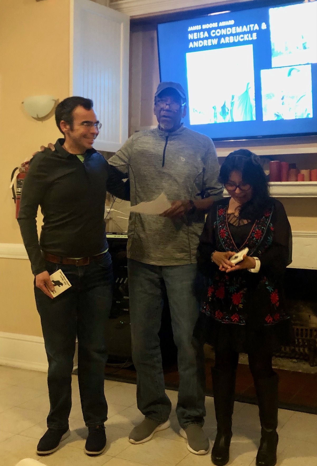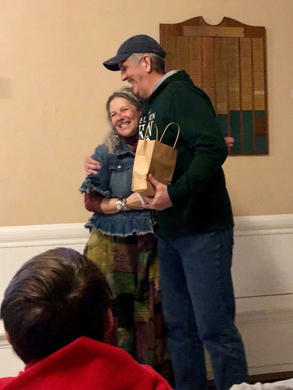 The evening was capped off with the award with the highest distinction, and one that is not necessarily awarded every year. Andrew Arbuckle and Neisa Condemaita received the James Moore Award directly from THE James Moore. It is always a delight to see members at the Awards party who have been involved in the VHTRC and in area trail running since the early days of the club, and that is particularly the case with Rebecca and James Moore.
