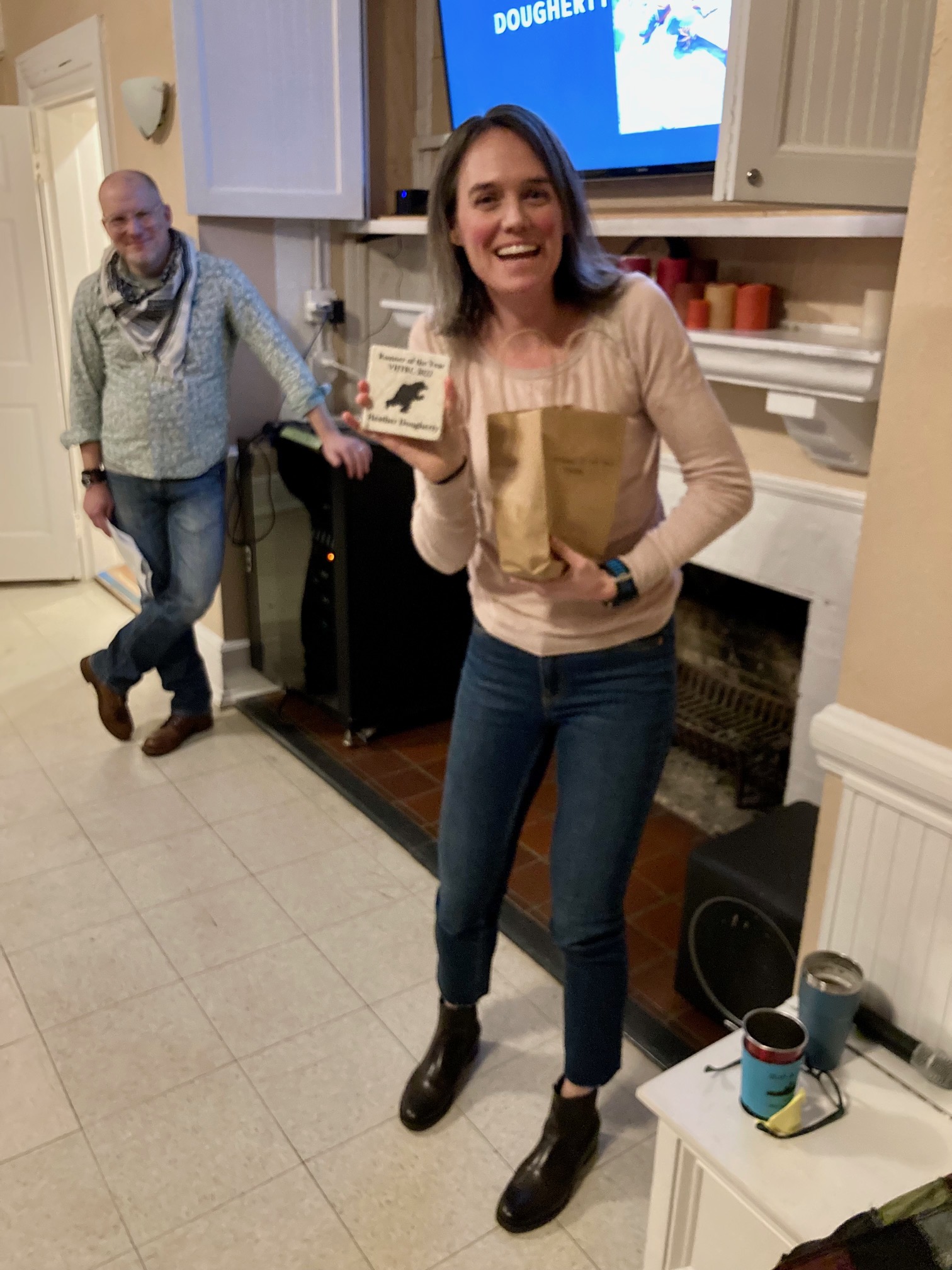 A special note of thanks to the awards hostess for the VHTRC, Katie Keier! Once again, in order to celebrate the running achievements of the club’s membership in 2022, Katie handled all the details around the annual awards and the party. This included choosing the very well-received style of award for this year, which consisted of a set of four stone coasters. Thank you, Katie!