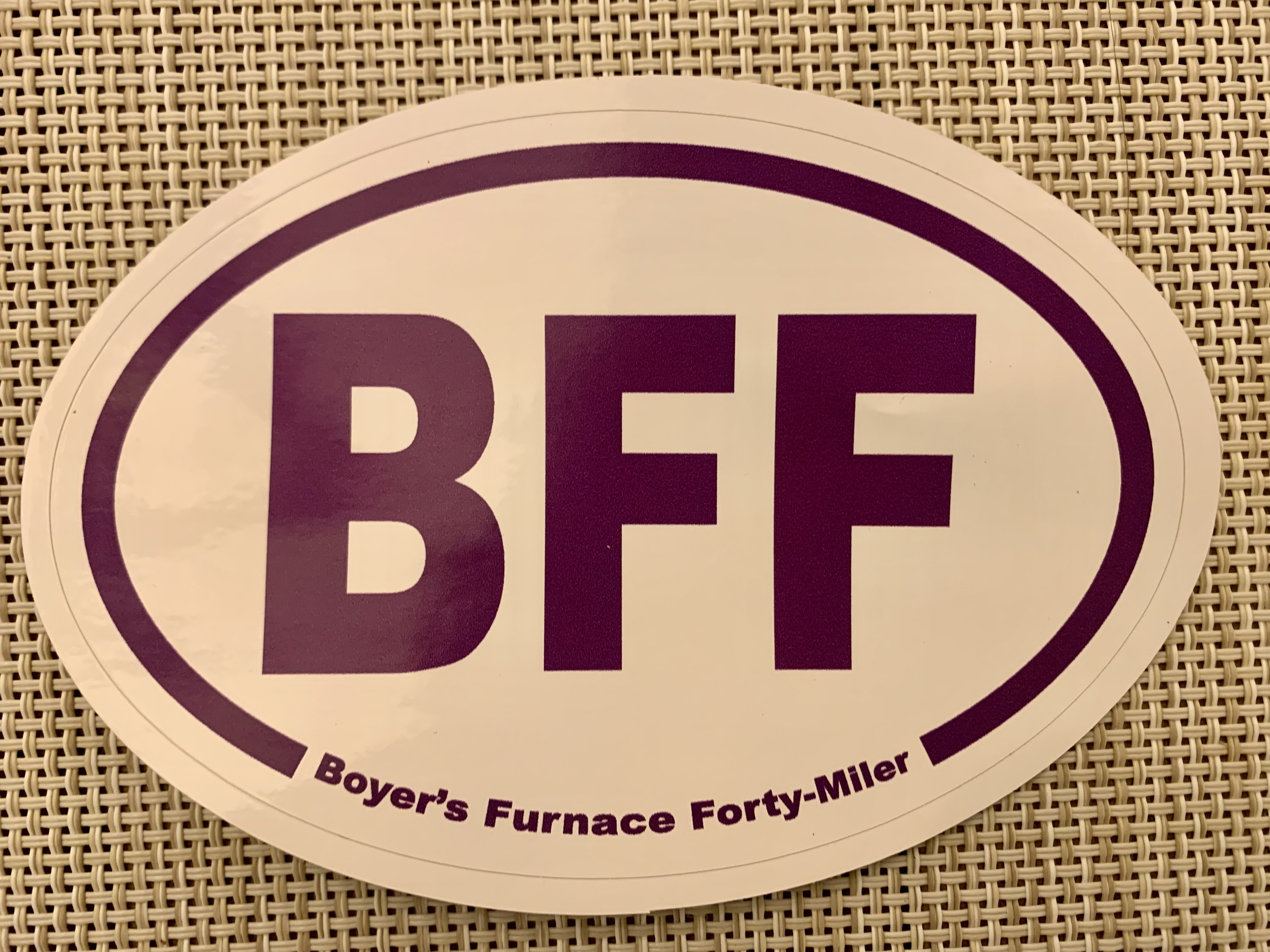 The 2022 holidays once again fall on the weekends, making scheduling for the 16th edition of the Boyer’s Furnace 40 Miler tricky. As the state holiday for Christmas “observed” will be on Monday December 26, 2022, we will once again reconvene at Camp Roosevelt in the southern end of the Fort Valley on Boxing Day. Mark your race calendars now! You will want to join us, not only for this scenic, challenging and varied course, but also to get your very own BFF finisher’s sticker! Entry will open up on Monday November 21.