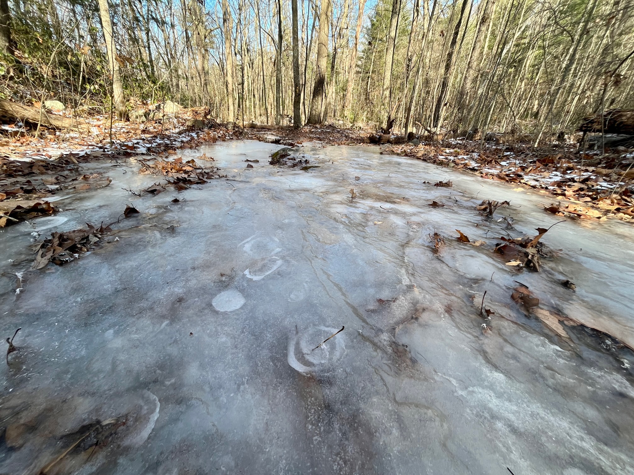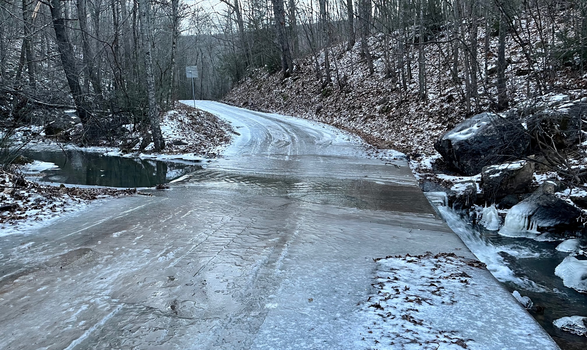 The course was treacherous, particularly the section leading up to the ridge after Woodstock (mile 23) and the last 3 miles down a normally benign country road to the finish. 5 runners reported falls, 0 needed hospital visits (phew). In that last stretch, concrete dips in the Moreland Gap Road turned into icy streams, and cars that previously drove through them created ice slides into and around those streams. Runners had no way to avoid taking the ice slides into the frigid streams, and had to crawl out with with wet, frozen feet. Other than that, the otherwise below freezing day was generally sunny and the winds were low. We take consolation where we can get it!