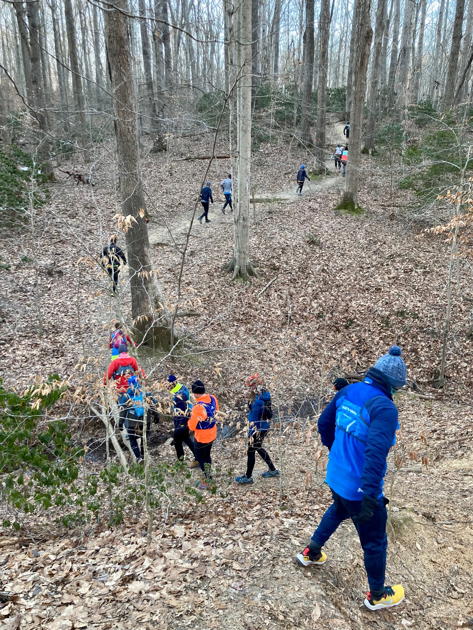 It was a glorious Saturday on the BROT for the first of the three planned “Baby Bull” training runs leading up to the 2022 Bull Run Run 50 miler. The Fearcast called for temps in the teens and a windchill dipping down close to zero, but the winds never materialized. Whereas over 40 hearty runners did! A fun time was had by all on this tour of the northern third of the BRR 50 course.
