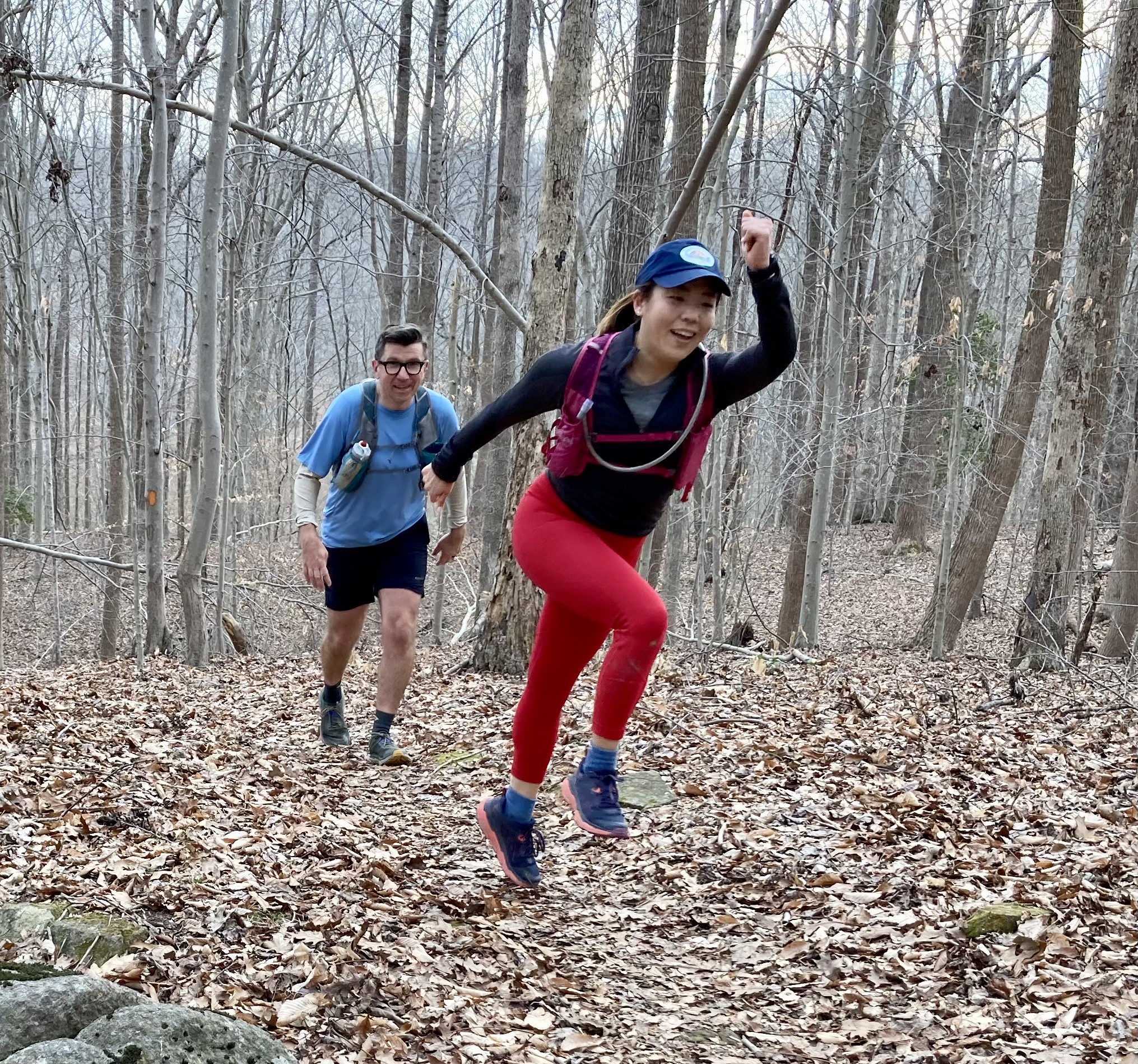 Thanks to George Scott for putting on a great show on what was an unseasonably warm mid-February day. Temps were in the 40s and 50s, and while there was some mud and high water points along the way, the conditions were relatively dry. The series of storms and extremely cold weather this winter ahead of this event took its toll on the trail in another way, however. There were a number of blowdowns that had to be clambered over, under or around on this day, and a lot of other debris hanging over the trail that the runners had to keep an eye out for, lest they lose an eye.