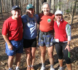 It just wasn’t right. Wearing shorts at the Magnus Gluteus Maximus 50 km, the VHTRC’s annual holiday fat ass run. This event is noted for cold, snowy weather. But this year, the weather was near perfect with a high in the 50s and the morning cold around 40. The result was one of the largest fields in the history of the event. Is this what we have to look forward to thanks to global warming?