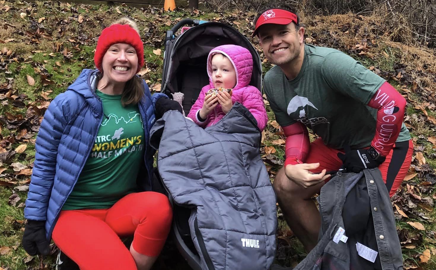 Josie Krughoff completed her first ever 25 kilometer run, dragging along her dogged mother, Tracy Cooley, and both being dragged along by the enthusiastic Freja Cooley, one of a handful of Canine-American participants in the run.