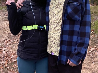 Kitty was here, but I was too scared to stop moving. I felt like a jerk—I should have stopped—but my fear was that if I stopped moving, I might not be able to keep going. I just went right through the aid station. This was regrettable, but I yelled a “Hi, love you, byeeee!” Volunteer Charlene Howard yelled a lot at me for not stopping, and it was deserved!