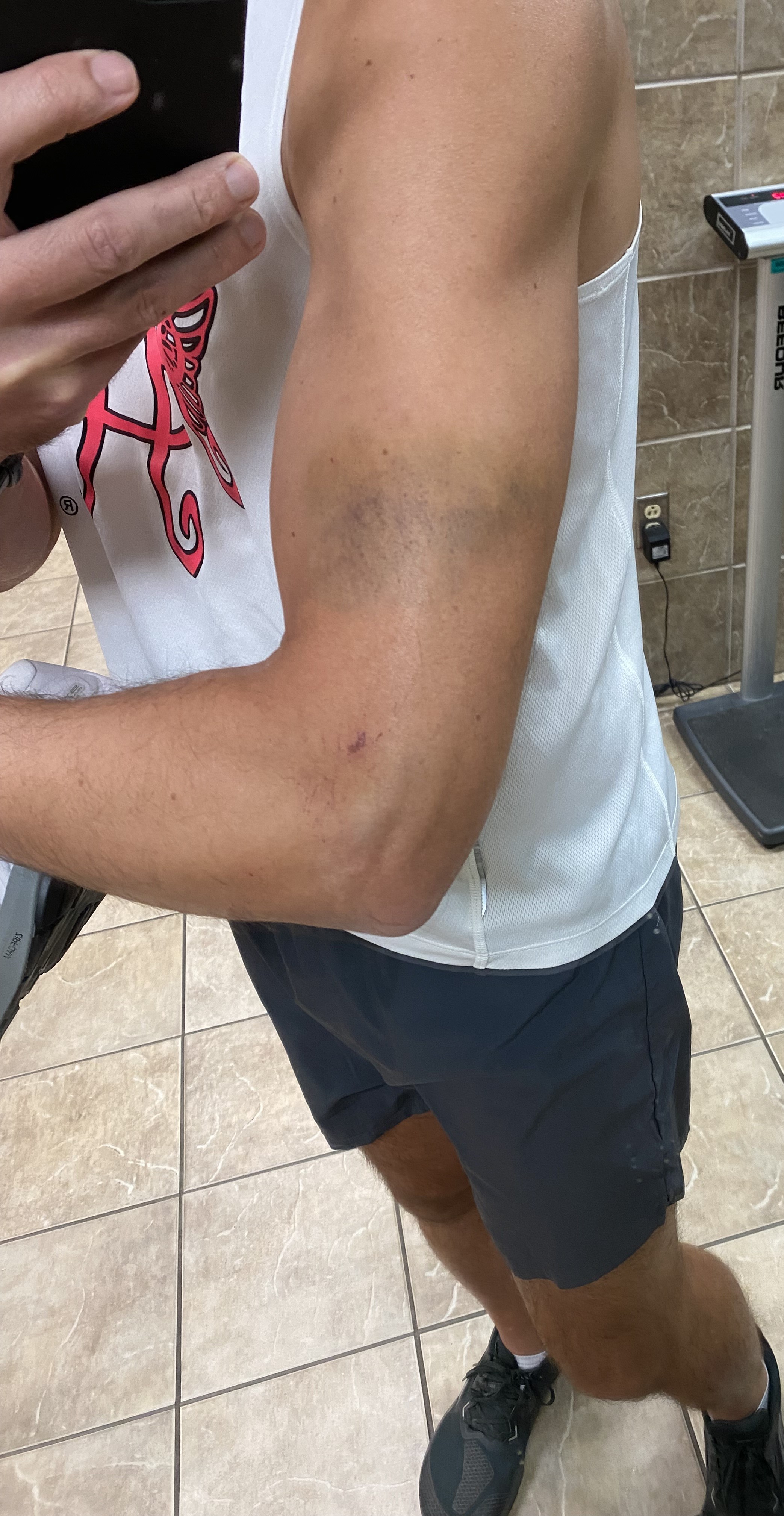 I kept moving forward for a while with my buddy—whose name I don’t know—who saw me fall. This guy was a saint for hanging with me because, let’s be honest, in many cases if you take a hard fall at mile 6, it’s easy and probably in your best interest to quit. This guy took my mind off it long enough for me to start feeling better. Early on I was scared I might have been really hurt.