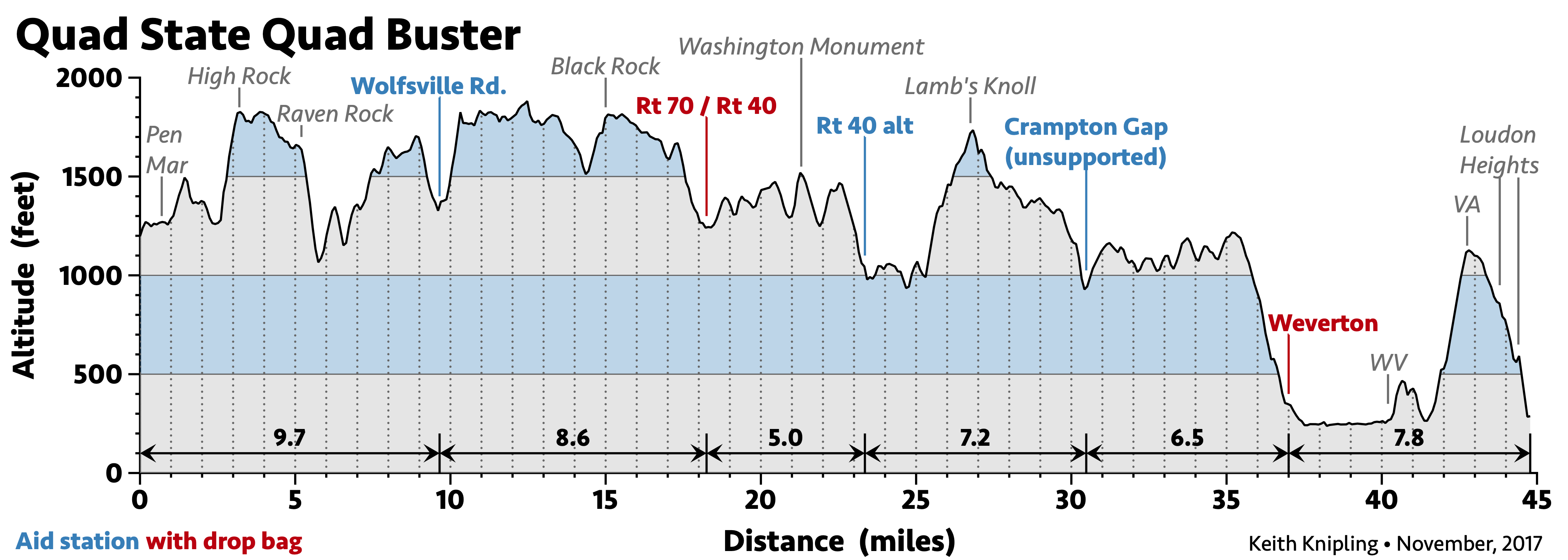 We will try our best to support everyone on this run. However, be prepared — mentally, physically and with your gear. If you are fast, you could very well out-run the aid and/or your drop bag. Ask Keith Knipling. Ask Sean Andrish when he set the course record. If you are moving slow, having a bad day and/or get lost, you may arrive at an aid location to find the station has already packed up and moved forward. Ask Joe Hanle. None of these guys whined about their situations. If you find yourself as an outlier at either of these ends, be prepared to solve your own problems. A working phone and an extra layer (if it’s cold/rainy) can go a long way here.