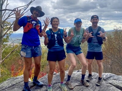 Heather Dougherty here: If I ran the last 13 miles, I was stopping at the dang cliffs! We were so slow that we got to the cliffs during the Golden Hour and it was beautiful. After the cliffs, I shuffled a little faster than the others downhill, but waited at the bottom to make sure we all finished together. I was so tired of those dang rocks. I got a little lonely though in those 10 minutes.