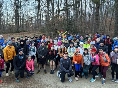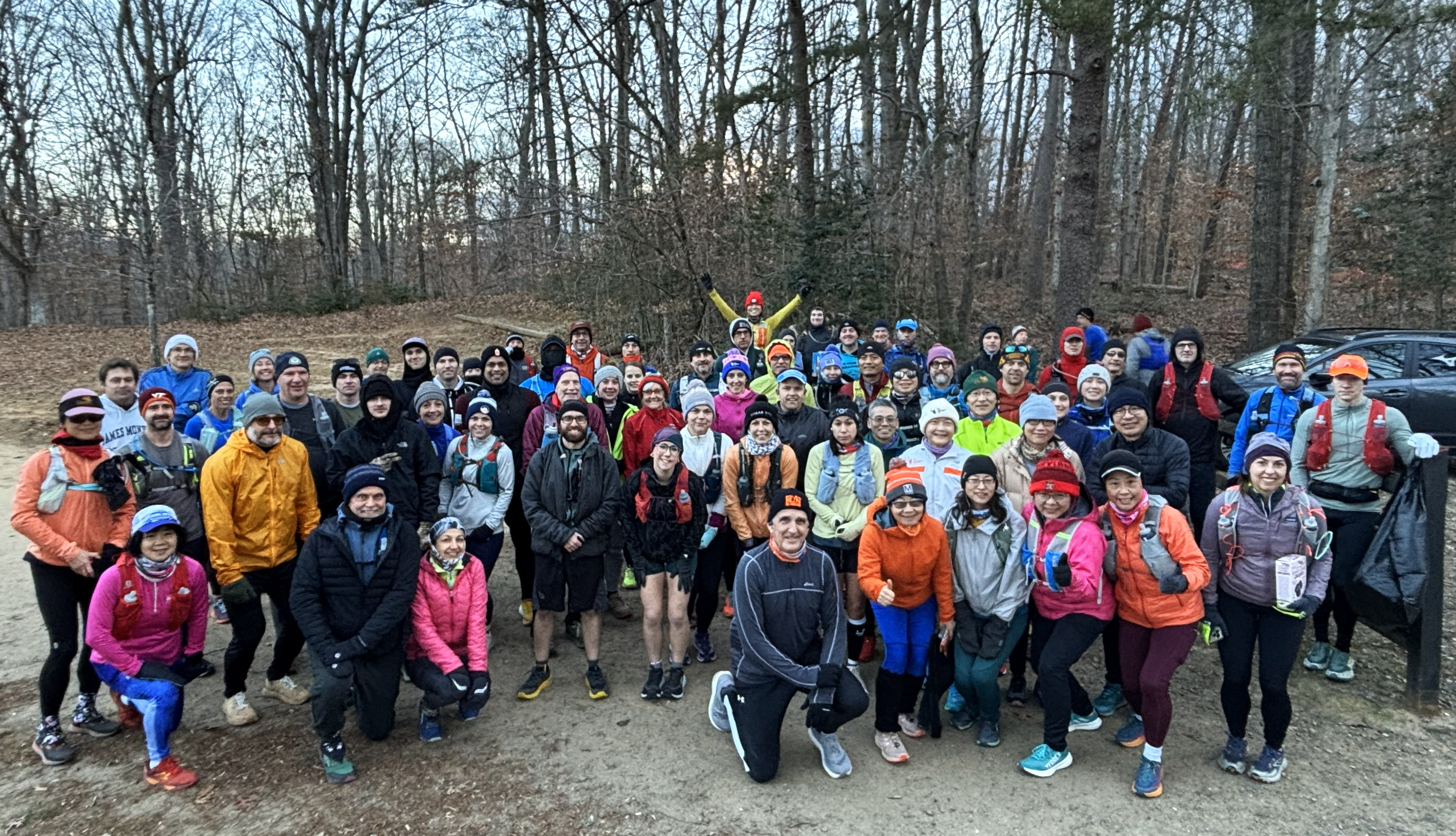 On a relatively chilly day by Virginia standards, the Virginia Happy Trails Running Club’s annual Redeye 50k got the year 2026 off to an impressive start. While the air temps were in the upper 20s to mid 30s, breezy and often downright gusty conditions made it feel a lot colder, particularly in the exposed area around the start. Fortunately, the day turned out to be sunny, the course was very dry, and as the winds largely died down as the morning progressed, it made for fairly nice winter running conditions.