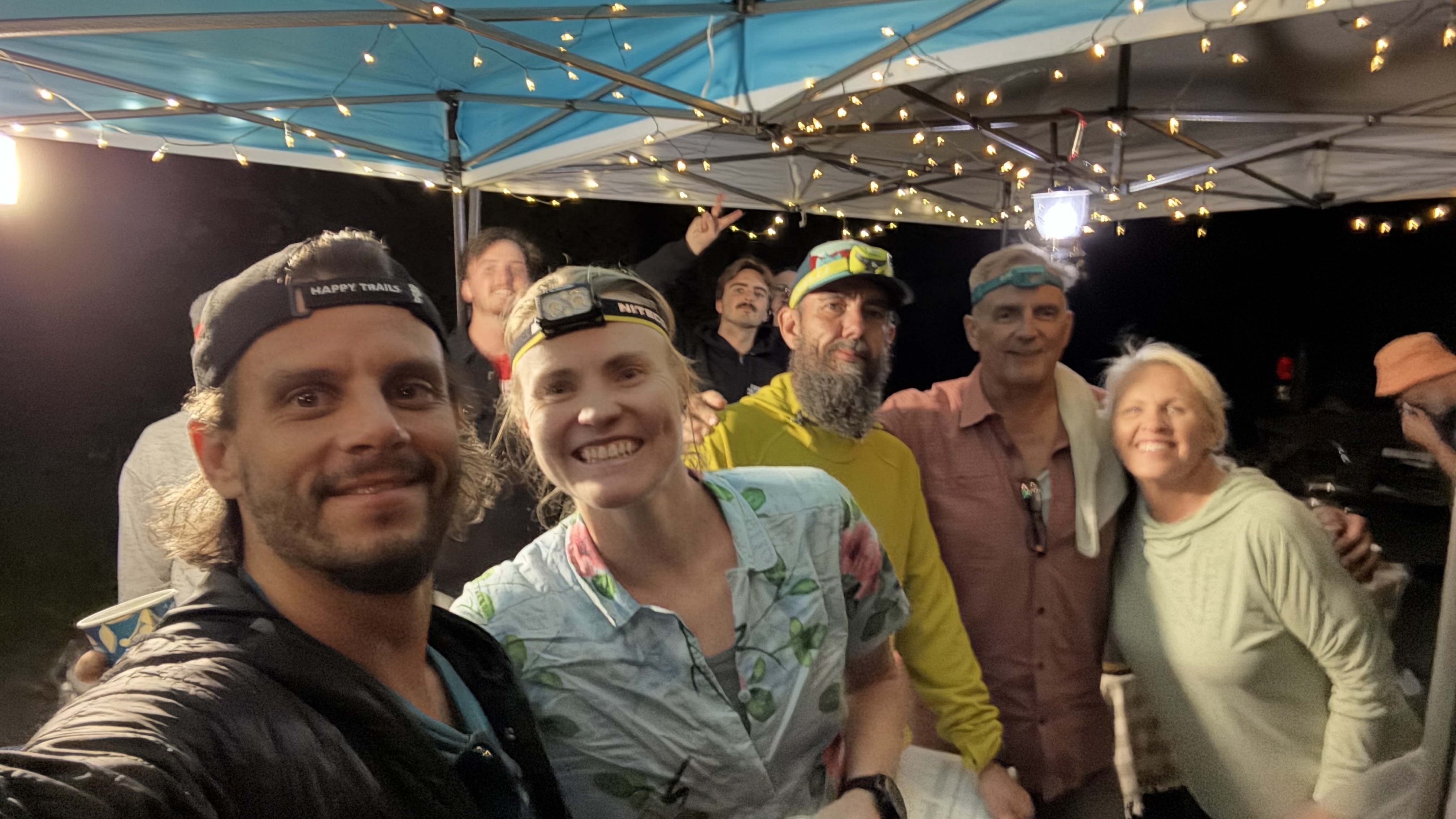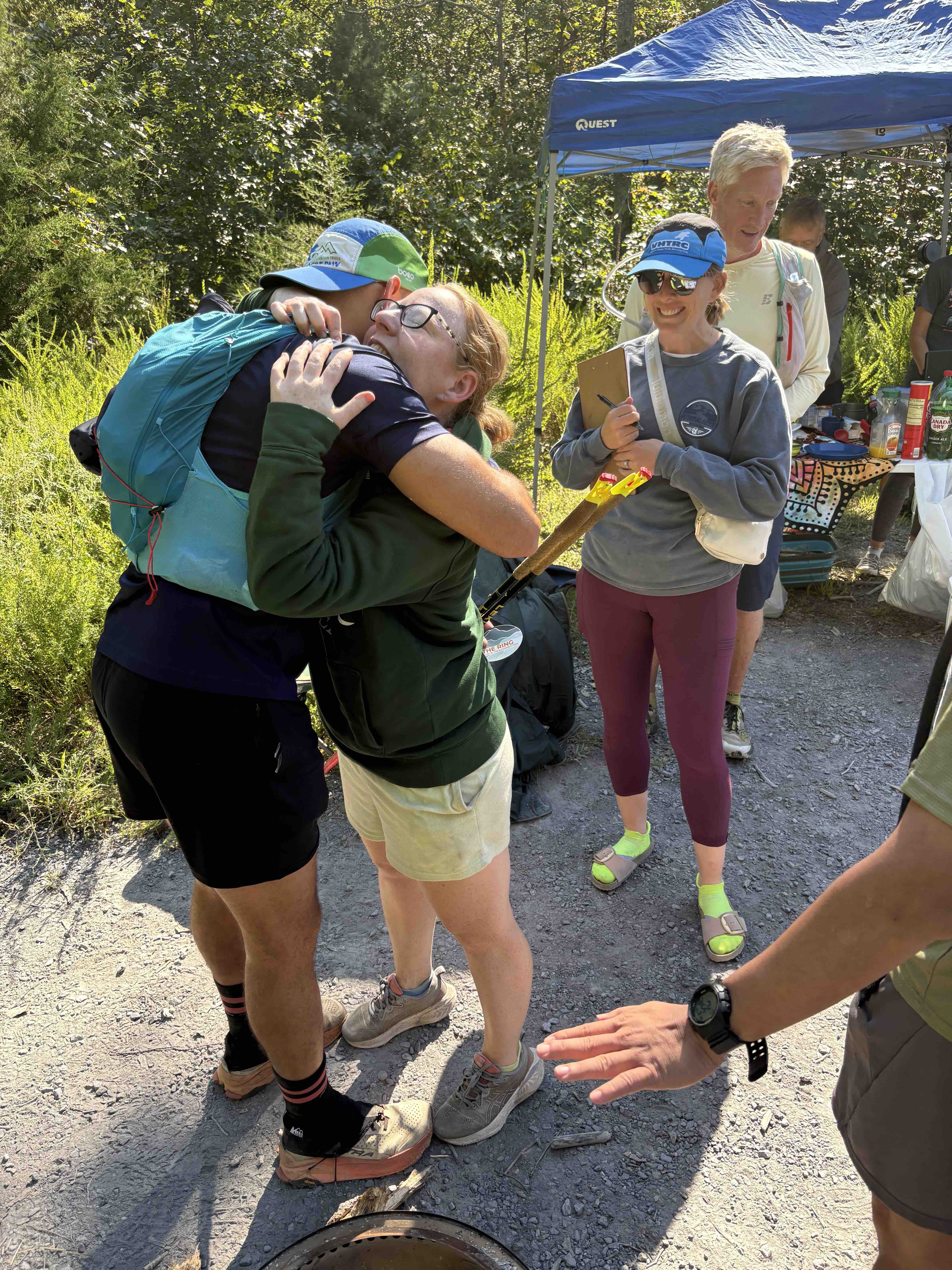 At Camp Roo, the second runner into the aid station, Stephen Knight, was ready to call it a day. His shoes weren’t handling the endless rocks, and he announced he was tapping out. But the VHTRC spirit wouldn’t let him go that easily. Volunteers began canvassing for backup footwear, and in true fellowship fashion, Kevin Bligan handed him Carl Bligan’s brand-new, never-worn Hoka Mafates. With fresh shoes and renewed energy, Stephen pushed back onto the trail and ultimately finished strong in just over 21 hours.
