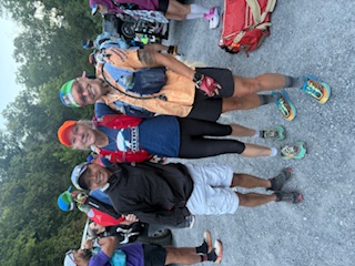 A few hours down the trail, I found that I didn’t quite hit my mark of getting into Camp Roo in 7.5hrs. I fueled up quickly here, after greeting all the awesome volunteers, who helped me grab my drop bag stuff, filled up my bottles with the help of my trusted buddy, Homer-who was going to pace me at Moreland Gap-and off I went trying to hustle a bit more through Duncan Hollow, and was quickly rewarded with another fall! This time caught by a vine that just face planted me onto the ground, barely missing hitting my chin on a rock, rattling me very nicely, and aggravating already sore parts! I continued on with the sweet company of Tin Lieu, and eventually made it up to Chrisman Hollow, after my slog up Waterfall. By this time, my body was protesting quite a bit and tightening up in many places. I made the tough decision to drop there, after being fed a wonderful cheeseburger with pickles and a homemade brownie by Jenni, one of the sweetest people in the World! At this time, realizing my race was done, I decided to go on the “culinary tour”of the Ring! I asked Homer if he wanted to join me in this endeavor, and he accepted after I promised to first change my clothes and clean up.