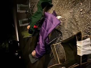 We headed out to Moreland first, dropping off a load of drop bags there, but not spending too much time there, just long enough to do meet and greets, and we were on our way down to Edinburg. White House Tom had some awesome items on the menu, to include pulled pork sandwiches, cole slaw and teriyaki meatballs, which were all amazing! Of course, he had some nice broth with noodles to warm me up as I waited to see Deb Cawthorn and some other runners come through.