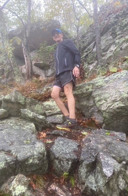 I jogged up the gravel road then started the climb. I like this part of the course because it reminds me a lot of The Wild Oak Trail. I moved with purpose up and ran when it was possible, grinding away. I didn’t really bump into anyone here at all until I got to the out and back to the Big Schloss overlook. I then talked to people coming back down.