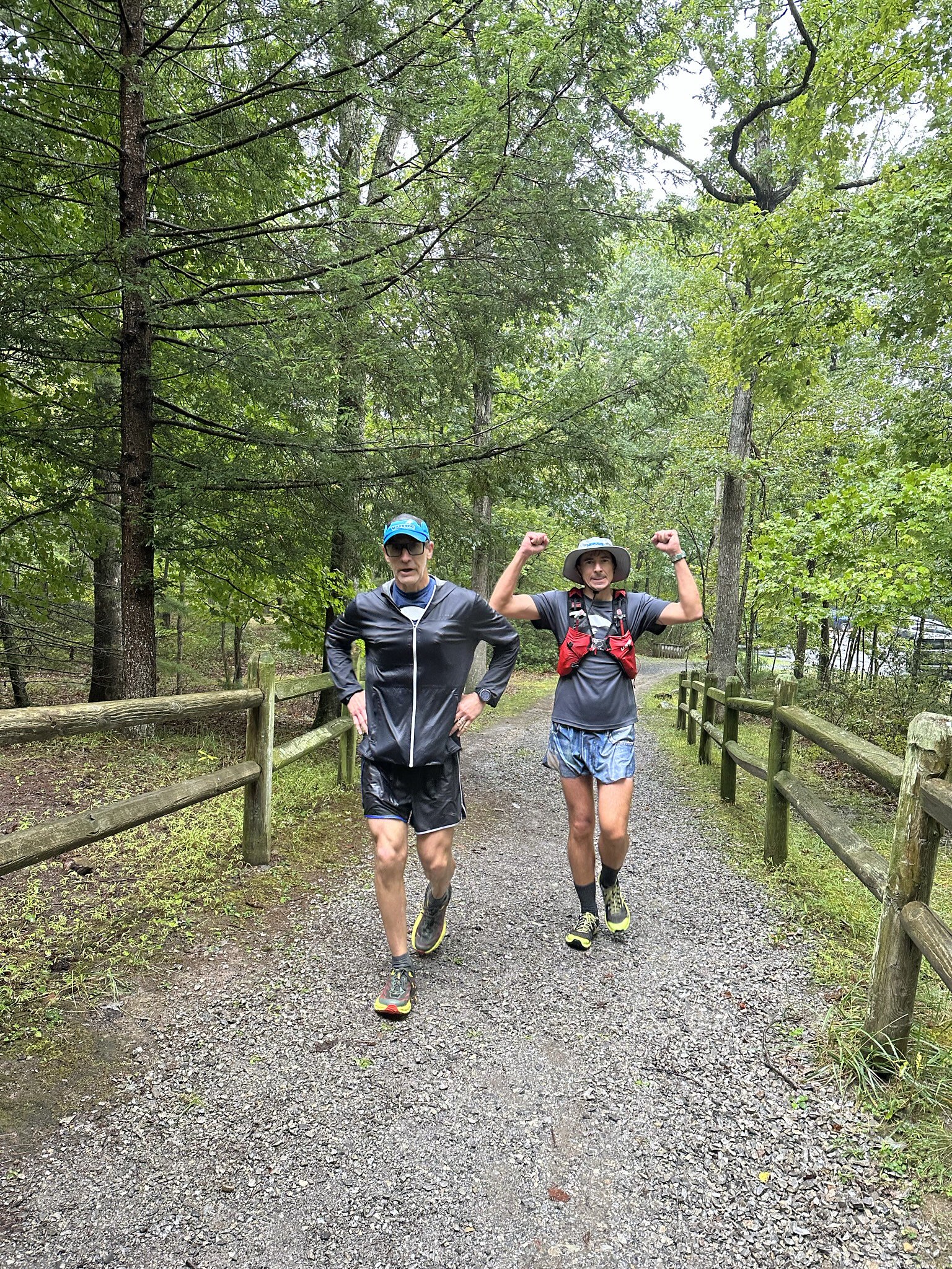 The beginning of this race is pretty fast. I don’t like running fast on trails but this was nice. Even after doing Barkley last week I was feeling good. I ran with Erin Altemos initially, then I went ahead. I was talking on and off with different runners. I had to stop to tie my shoe and Erin had caught back up to me, so I ran with him for a bit more.