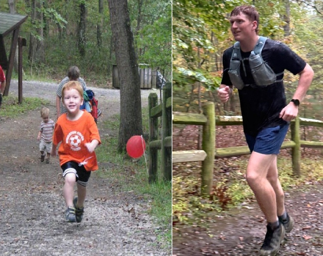 Several new faces were in the crowd this year as the group started off into the mists around Rockcliff Lake, but we were also privileged to have the founders and creators of the run, Steve and Amy Platt joining us, supporting their son Chase as he ran his first ultra, with Steve also completing his third Schloss! It was a treat to hear some of the stories of how the course was created, with the help of enthusiastic locals. Amy reminisced that Chase and his siblings grew up running and playing around the Trout Pond Pavilion every year for the run just like Theo has, and to see this come full circle with Chase completing the Schloss was truly special.