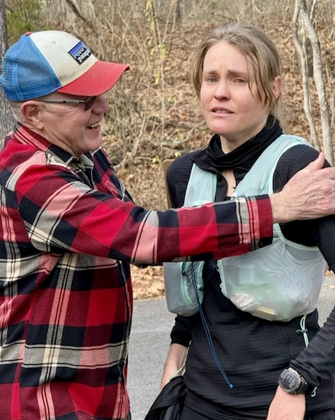 This year the Hellgate aid stations had to be moved because of the snowy and icy conditions. Horton announced that runners would not see their crews until mile 30, at Jenkins Gap. We made it work! At mile 30, I ran into the aid with torched legs from the first section’s snowy climbs, which felt like running in quick sand. Ivory kept me level-headed, provided me with water and fuel, and sent me on my way, ready to race!