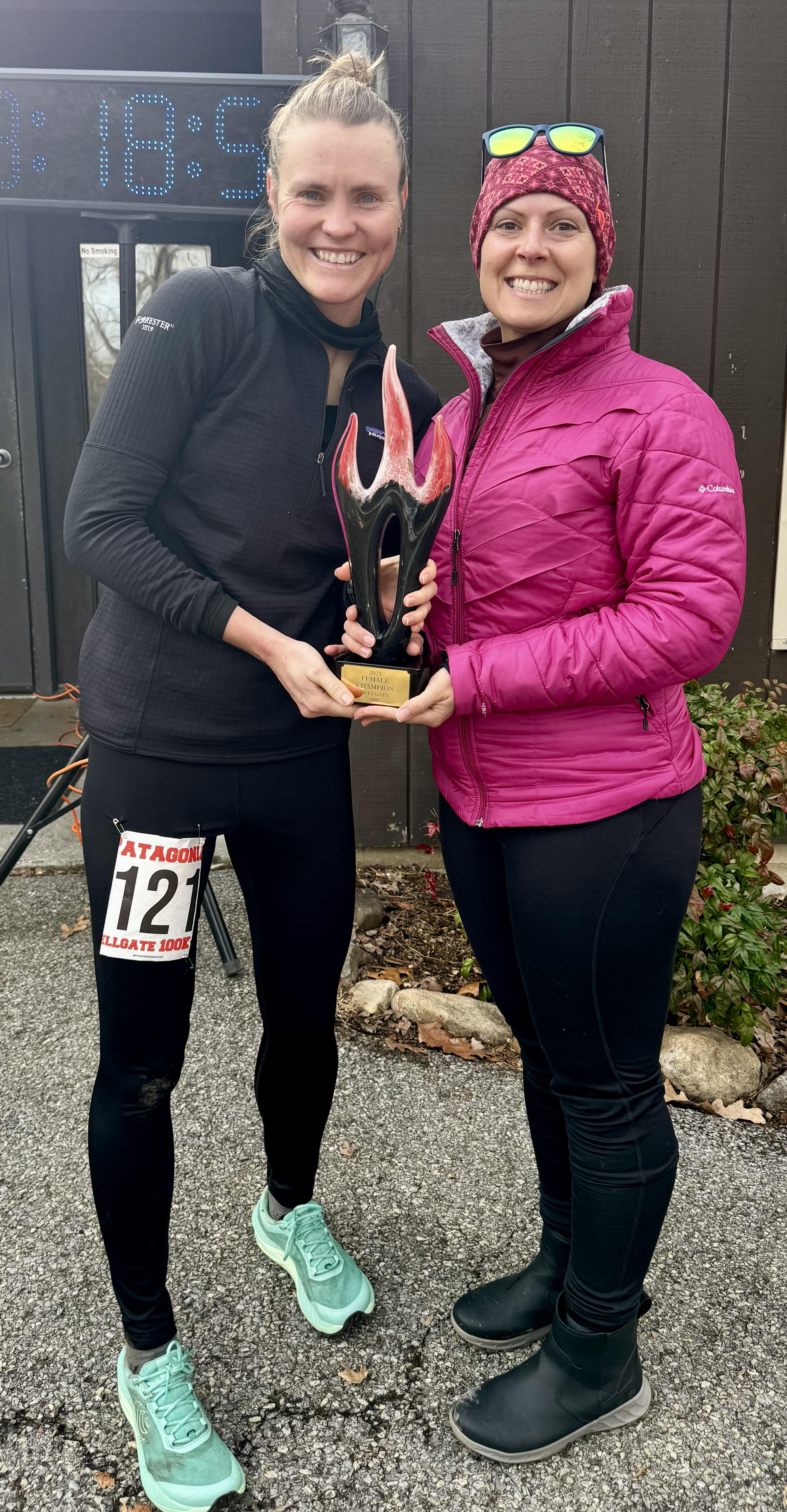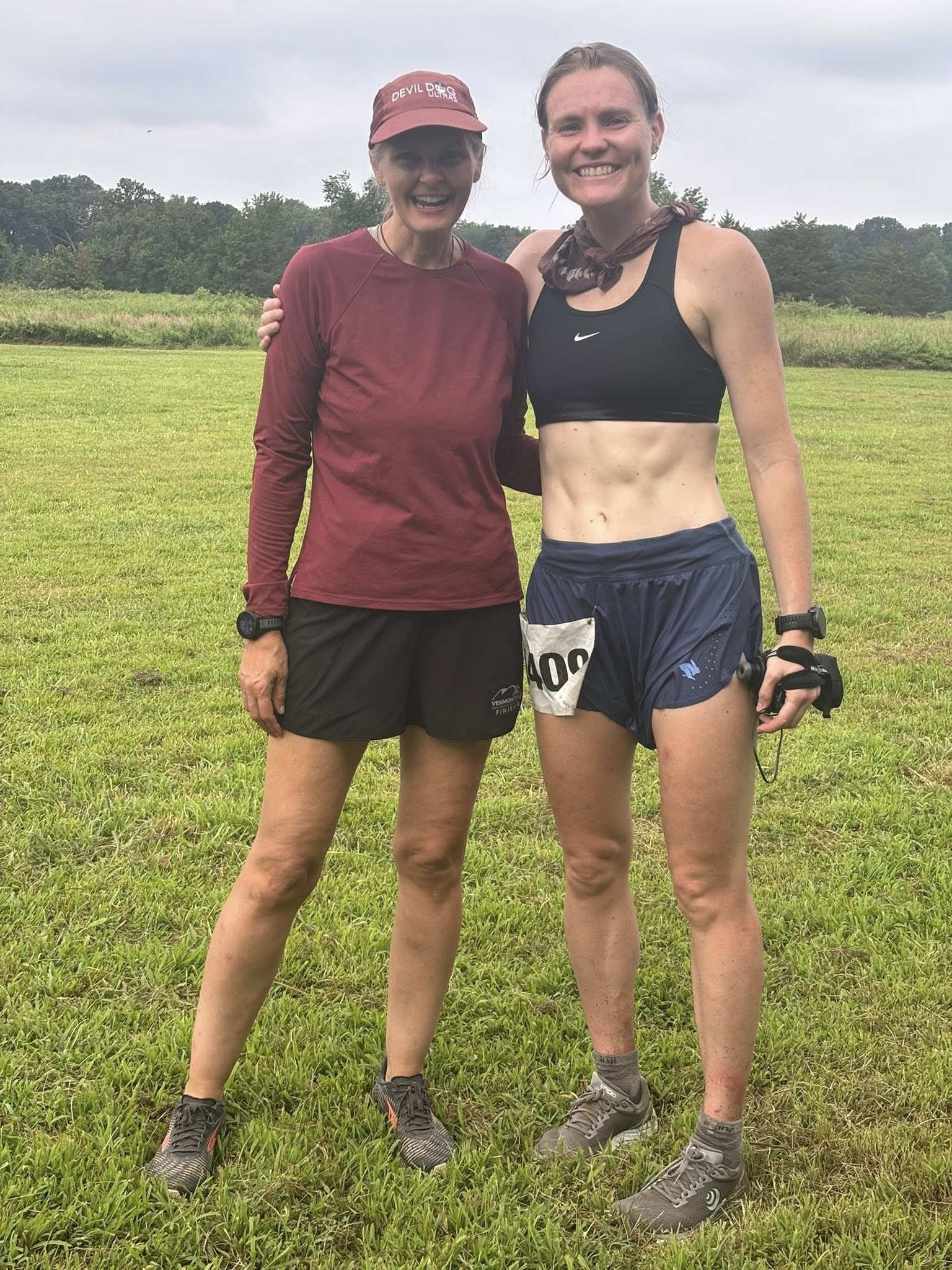 Under the horse pavilion at the finish of Furbutt’s Backyard, with race director Tracy Cooley and volunteer Dannah Vardaman.