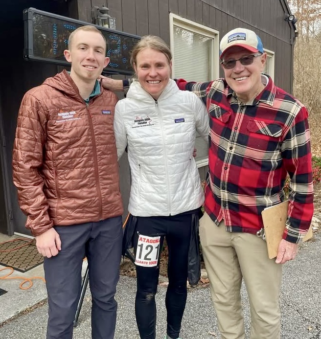 Hellgate Race Director Dr. David Horton and the men’s winner, Brandon Fogerty, flank Lexi. 📸Hortie