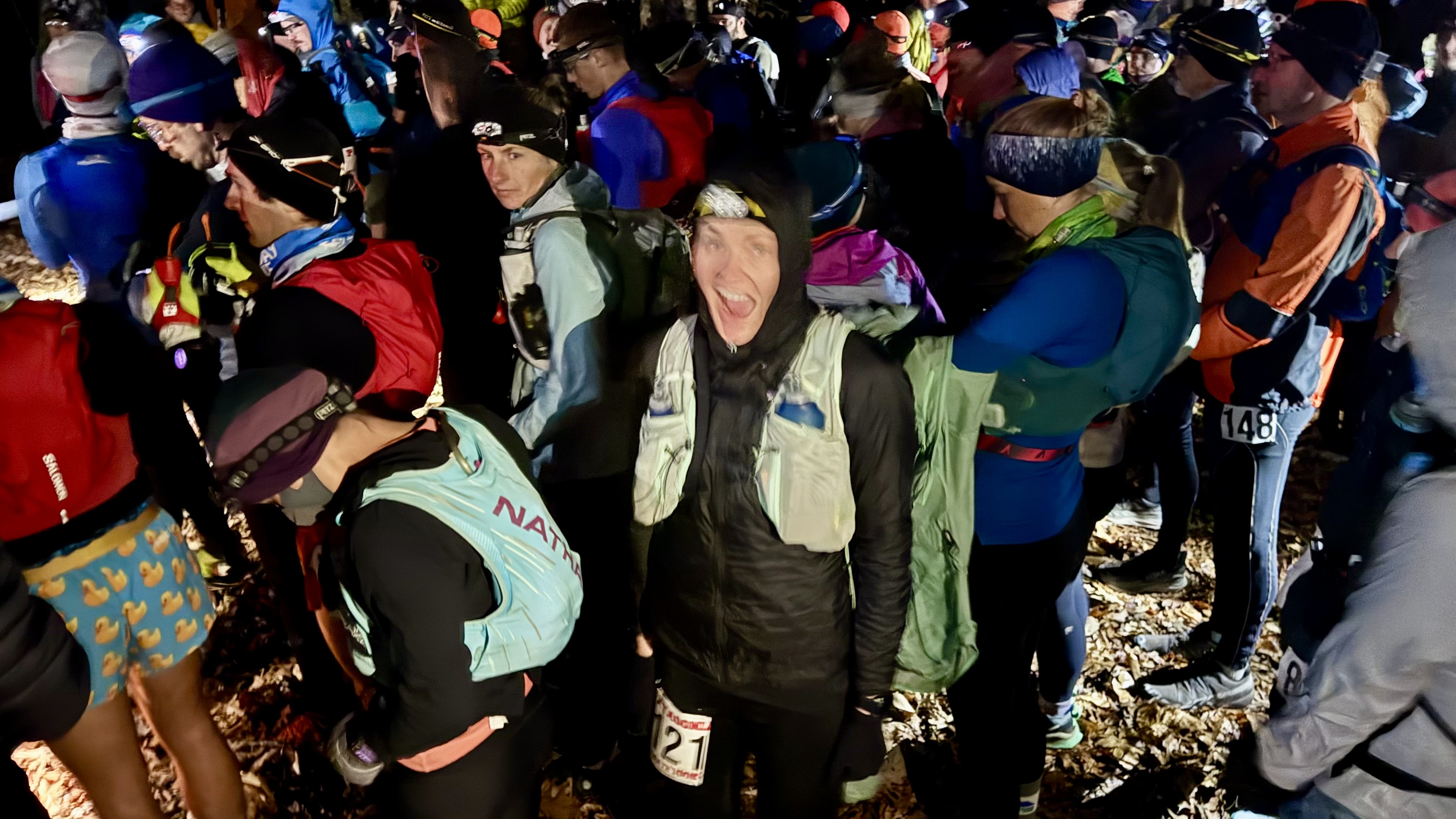 Waiting in the starting corral at Hellgate, eager for Hortie to yell “Gooo!!” at one minute past midnight.