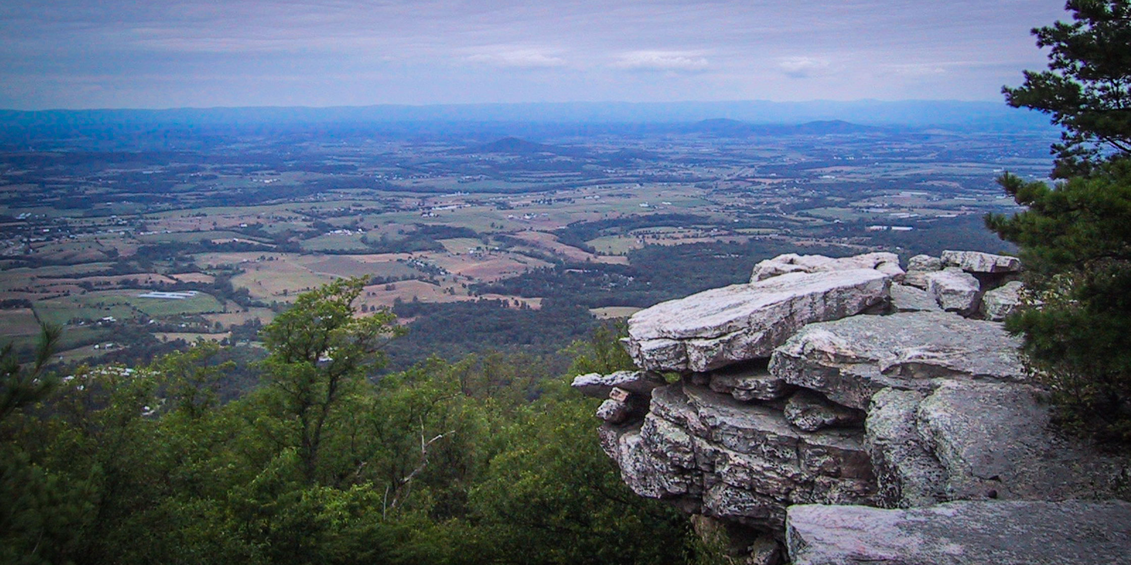 Caroline Furnace Lutheran Camp, the start/finish of the MMT 100, flanked by the East and West ridges of the Massanuttens.
