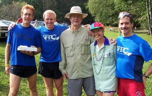 I would like to thank all of the volunteers for their commitment, service, and time. I also would like to thank the Northern Virginia Regional Park Authority for its support, along with our sponsors - The Chocolate Chick; Eastern Mountain Sports; Metro Run and Walk; Montrail; Patagonia; Susan E. Petty, Certified Massage Therapist; and the VHTRC. I would like to extend a special thanks to Valerie Meyer for race timing and her computer skills. Her efforts before the race and at the finish line were invaluable. Marge Burley deserves special thanks for shopping for and chopping pounds of fruit for the chocolate fountain and obtaining the Tylenol, which you received in your race bags. I also want to thank Lucia Davidson, who handled registration.