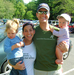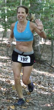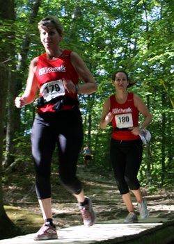 It was a beautiful day for running! Heather Schaffer posted her third WHM win by pulling away from a close pack of pursuers. Heather was second in 2002 and won the event in 2004 and 2005. Allison Craig and Kasha Schoolmeester, who had run together at Virginia Tech some years ago, shared the lead over the first part of the run, but Heather passed them to take the win.