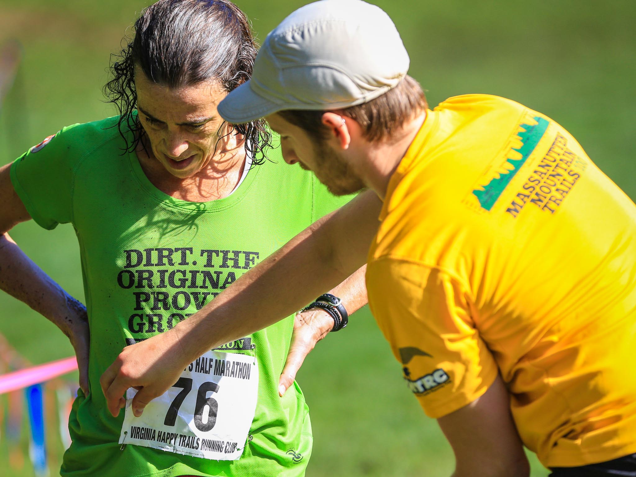 Robin Watkins won the race in 1:43:21, besting fellow VHTRC member Holly Bugin, who’d led for much of the race but missed a turn near mile 9 and was eventually set straight by a pack of Boy Scouts. Holly lost her lead when she veered off course and fell back to as much as eighth place before surging to a second-place finish. Ann Stanley of Richmond took third, and the first VHTRC finisher was Sheila Vibert.