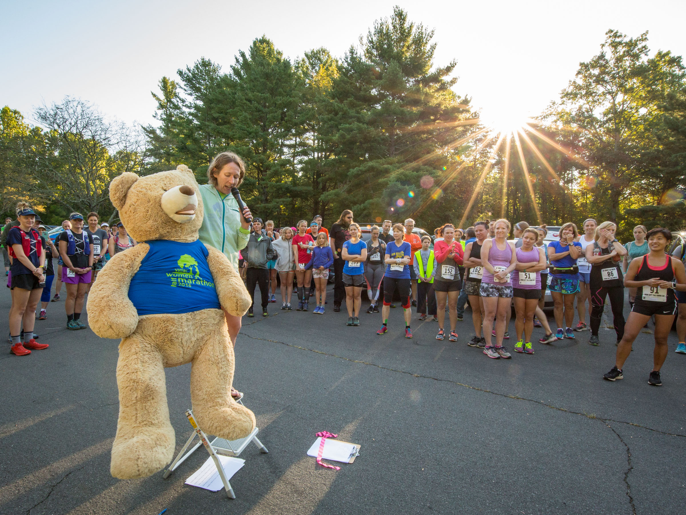 The 25th Women’s Half Marathon will go down in race history as “the Furbutt one.” A 5-foot-tall stuffed teddy bear (named after the VHTRC’s logo of a running bear) joined the ranks of silly stuff that racers can pick up at an aid station. Furbutt was an instant classic, with many runners vying for the chance to lug a preposterous plush toy through the final miles of the race. Two women worked in tandem to bring him back home from the Wolf Run Shoals aid station, and then Furbutt hung out at the finish line for the rest of the day, taking selfies with finishers. And he looked good. Damn good.